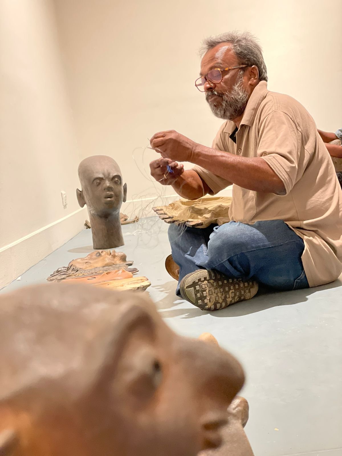 The earthly charm and innocence in his depiction are like a soothing balm to us today. The everydayness of his figures, specially heads, appeal to the viewers and make them feel and introspect . The earthly feel, smile on our lips, kindling charm in our eyes and contemplation lead us to our rural rustic roots where the smell of clay and purity of life are predominant. Often discussed as having deep resonances with Brancusi and Himmat Shah, Reghu’s ‘Heads’ are ultimately steeped in the contours of the Indian landscape. Majestic in their bearing, classical in line and form, they reflect the glowing skin and radiant expression of ‘sentient beings’ becoming creations of the pure, undiluted human spirit.